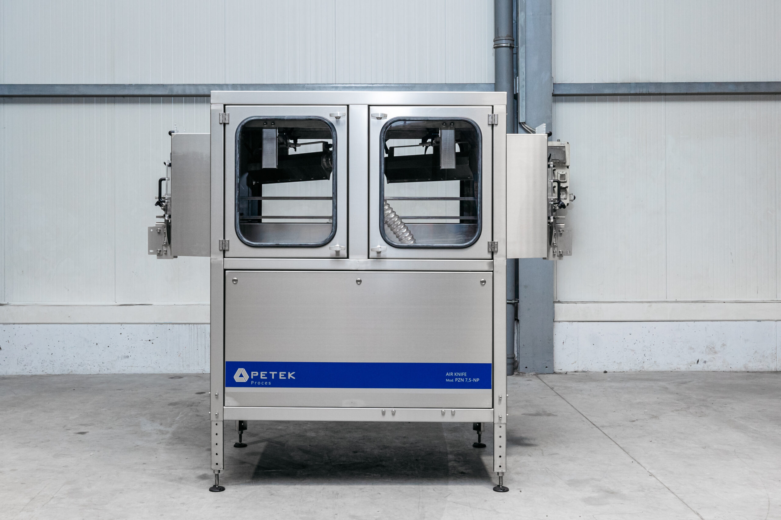 Zračni nož je samostojni stroj, ki ga je mogoče vključiti v proizvodne linije za povratno in nepovratno embalažo. Njegova osnovna funkcija je učinkovito odstranjevanje vodnih kapljic s površin embalaže z uporabo lastno generiranega, zelo močnega in nadzorovanega zračnega toka.